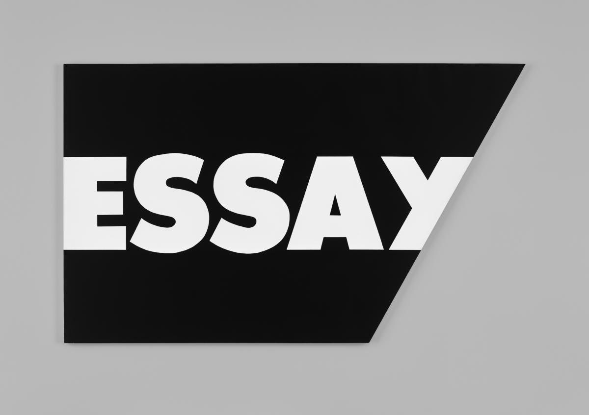 Sans titre (Essay) est très représentatif du travail de Christian Robert-Tissot dans les années 1990. Le terme choisi renvoie à un travail de dissertation avec point de vue personnel. N'est-ce pas précisément ce que l'artiste fait avec la peinture ? La sévérité de la typographie et l'austérité du noir et blanc font converger la forme et le sens. Cette œuvre montre bien que si dans toute la pratique de Robert-Tissot voir c'est lire, il compose toujours avec la réalité matérielle de l'œuvre. L'adoption de l'anglais lui donne l'opportunité de pratiquer ici le Shaped Canvas. Et cette découpe diagonale du support, qui épouse l'extrémité du Y, indique clairement que la peinture n'est pas pour lui qu'une idée, mais aussi un objet physique. (DD-2018)