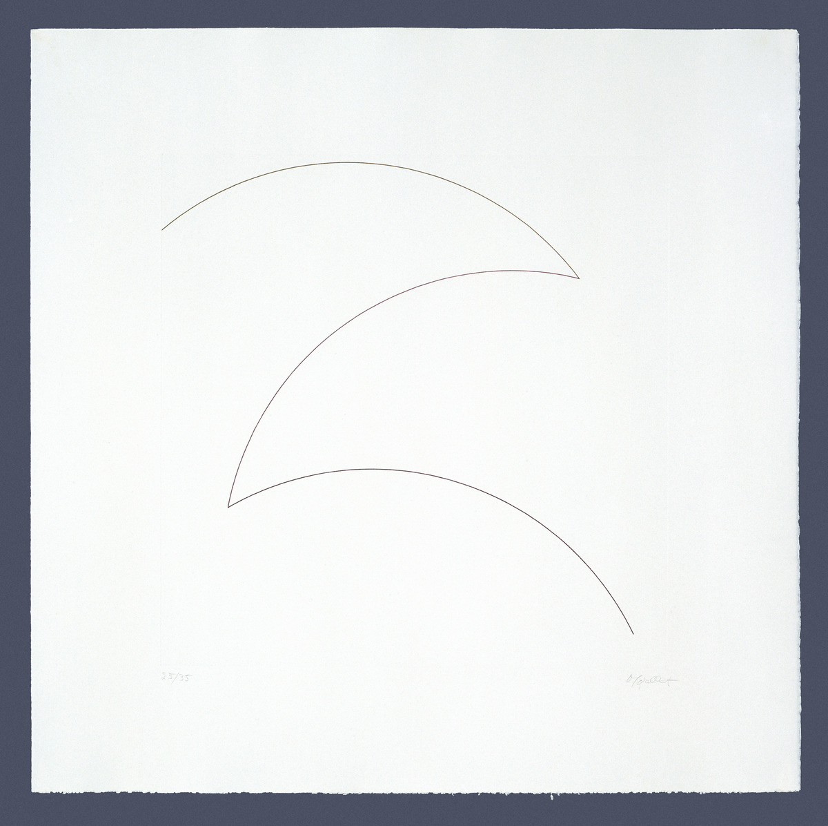Cercles brisés, couleurs rompues, est une série de huit burins sur cuivre, représentant trois arcs de cercle formant une ligne continue. Chaque occurrence du motif s'appuie sur la marge et déplace les arcs, suggérant un mouvement dynamique de formes en expansion. L'utilisation très légère de la couleur ne se perçoit qu'après une observation rapprochée. "J'ai toujours été passionné par le mariage de l'ordre et du désordre que ce soit l'un qui produise ou perturbe l'autre ou l'autre qui produise ou perturbe l'un". Le choix de la gravure sur cuivre est également un défi par les contraintes qu'exige cette technique, qui rend l'obtention d'un résultat précis, neutre et froid d'autant plus difficile. La gravure impose le fond blanc et l'usage de lignes. C'est une technique légère, aux antipodes des matériaux de construction qu'il utilise pour ses installations. Il pose ici avec brio et élégance la question de la fragmentation des formes, du jeu et du hasard qui sont au cœur de sa création. (EE-2019)