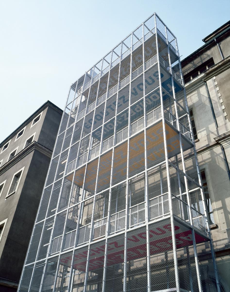 Ajouter à la sélectionChristian Robert-Tissot (né en 1960, Genève (Suisse))Sans titre, 1999 - 2000peinture acrylique sur béton4 paliers de 8 x 2,5 mn° inv. CP 2000-1 / A - D commande 2000ECG Ella-Maillart (ancien collège de Candolle)